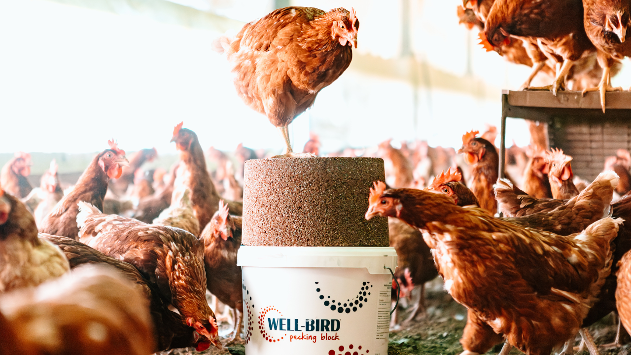 Developed and manufactured in the UK, Well-Bird® Pecking Block is specifically designed to satisfy a bird’s natural desire to forage, explore, scratch and peck. The enrichment block is the perfect hardness to gratify, without interfering with their day-to-day diet. At the same time stress of the flock is lowered and problems with unnecessary feather pecking are reduced, enhancing overall bird welfare.